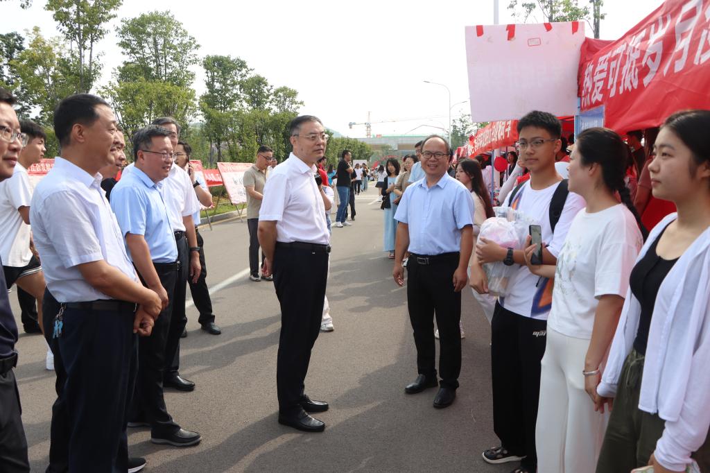 校党委副书记、校长李文喜,校领导安涛、张昌林在市中校区看望报到新生,并慰问迎新工作人员与志愿者。李文喜勉励新生胸怀高远志向,珍惜大学时光,努力成长为国家社会发展所需的栋梁之才,并感谢家长们对best365体育官网平台的信任,表示学校将携手家长一起关心新生的学习、健康和生活,让孩子们健康快乐地成长。在迎新现场,李文喜详细了解新生报到、服务保障、各单位亮点举措等情况,希望迎新工作人员热情周到地做好迎新工作,共同营造良好的学习生活环境,帮助新生尽快融入学校。