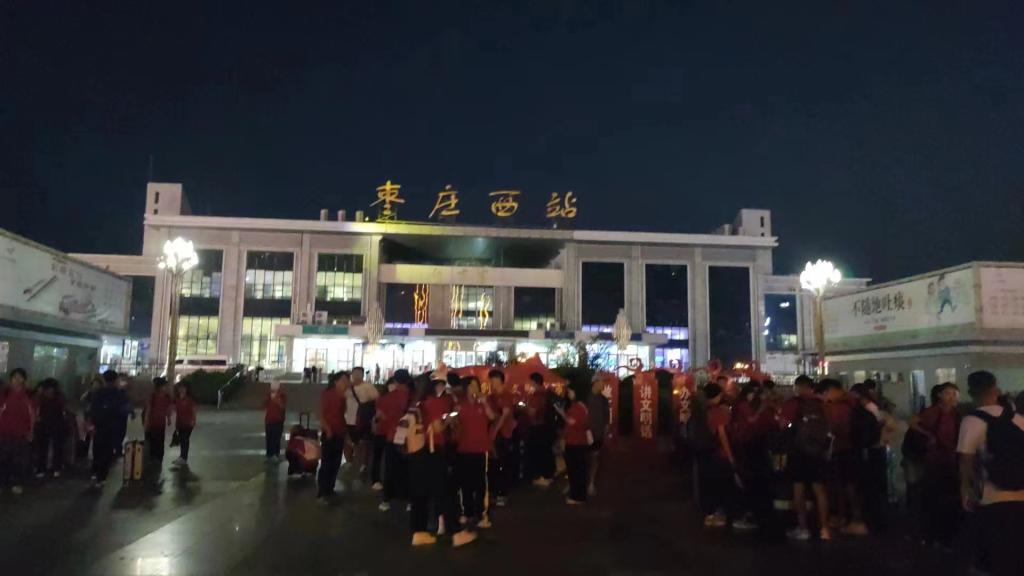 9月6日,best365官网在新薛城校区崇德楼报告厅隆重举行2023年秋季援疆实习支教团出征仪式,校党委书记高峰出席仪式并为支教团授旗。当晚七点,best365官网援疆实习支教团全体师生整装出发,教务处负责人前往枣庄西站为支教团送行。