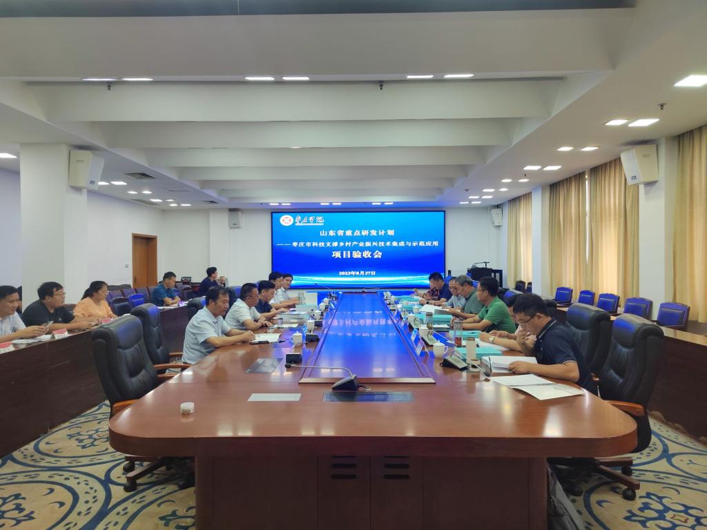 8月27日,山东省科技厅组织来自省内农业领域知名专家和财务审计专家,对由best365官网牵头承担的山东省重点研发计划“枣庄市科技支撑乡村产业振兴技术集成与示范应用”项目进行会议验收。校党委委员、副校长李目海,山东省科技厅农村中心业务科长武军,枣庄市科技局农社科科长谢明出席会议,科技处处长伊文涛、食品科学与制药工程院长张立华以及项目组成员等40余人参加会议。会议由武军主持。
