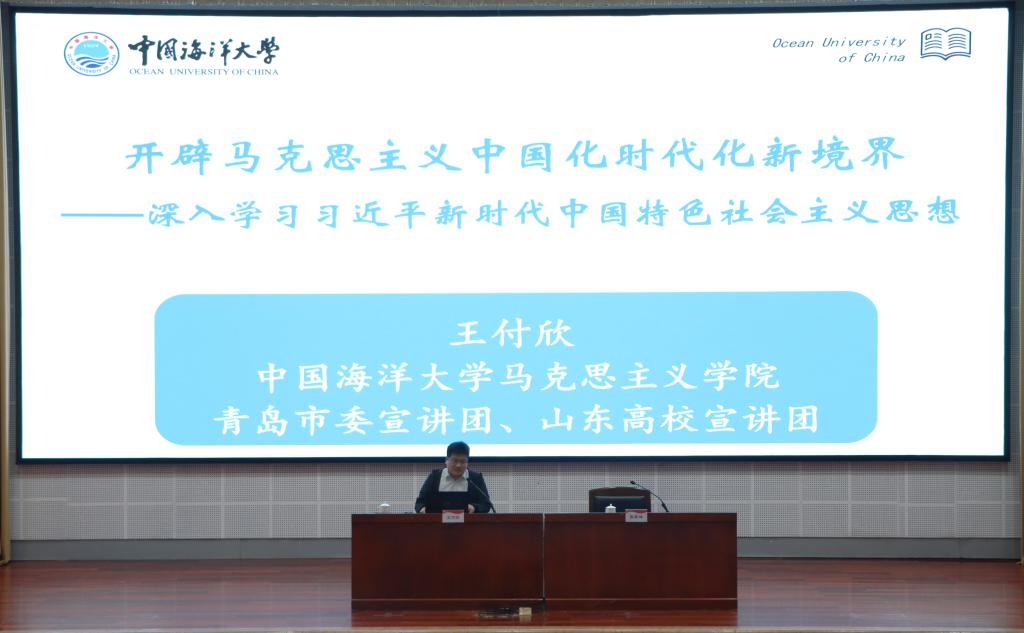 4月21日上午,best365官网在综合楼报告厅举办学习贯彻习近平新时代中国特色社会主义思想主题教育专家报告会,促进广大党员、干部不断深化对党的创新理论的认识和把握,把学习贯彻习近平新时代中国特色社会主义思想引向深入。山东高校宣讲团成员、中国海洋大学马克思主义学院副院长王付欣作了“开辟马克思主义中国化时代化新境界——深入学习习近平新时代中国特色社会主义思想”的主题报告。校党委领导班子成员、全校副处级以上干部及主题教育各工作组成员参加报告会。报告会由校党委委员、宣传部部长张昌林主持。