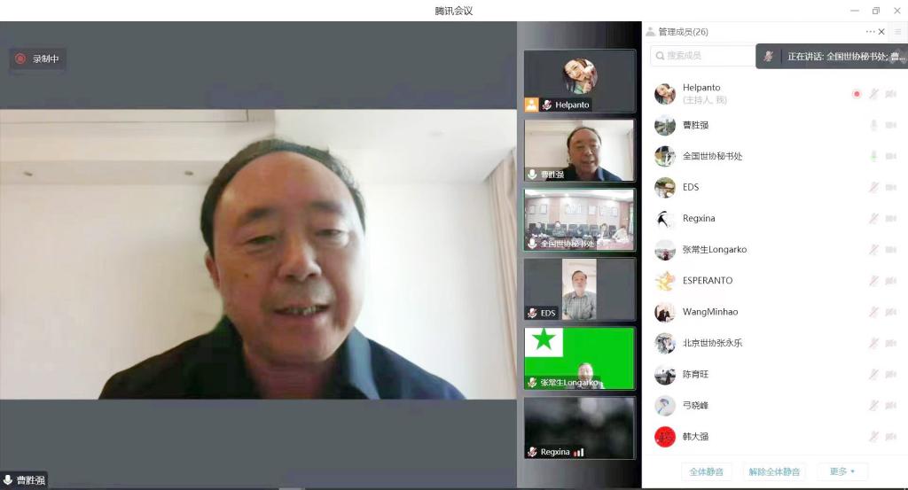 曹胜强强调,作为世界语工作者,我们要以习近平新时代中国特色社会主义思想为指导,全面贯彻落实党的二十大精神,坚持“两个结合”, 发挥世界语融通中外的特殊作用,讲好中国故事,特别是讲好中国特色社会主义的新时代故事,为中国话语和叙事体系更好地走向世界、与世界沟通交流营造良好话语传播环境,展示大国自信形象。