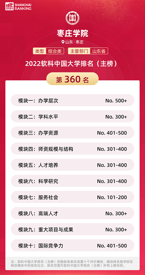 “软科中国大学排名”前身是“中国最好大学排名”,自2015年首次发布以来,以专业、客观、透明的优势赢得了高等教育领域内外的广泛关注和认可,已经成为具有重要社会影响力和权威参考价值的中国大学排名领先品牌。“2022软科中国大学排名”的对象是中国1000多所本科层次的高校,坚持贯彻国家高等教育改革和教育评价的方针、政策,设置了十大评价模块,细分36个评价维度,内嵌104项评价指标,涉及320个评价变量,是对中国大学办学水平的立体化监测式评价。本次排名中,清华大学、北京大学、浙江大学蝉联主榜(即综合性大学排名)前三位,best365官网在主榜中排名第360名。去年,best365官网位列“2021软科中国大学排名”主榜第555名。