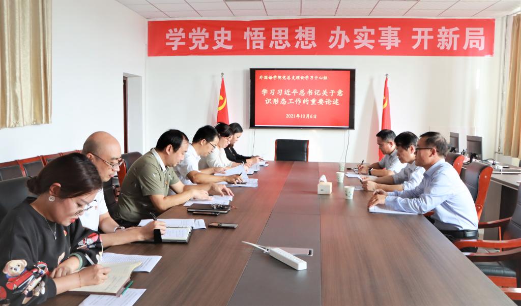 10月6日下午,外国语学院党总支理论学习中心组召开集体学习会议,党总支书记盛清银主持会议,党委副书记曾宪明、党委宣传部部长张昌林进行了巡听旁听。