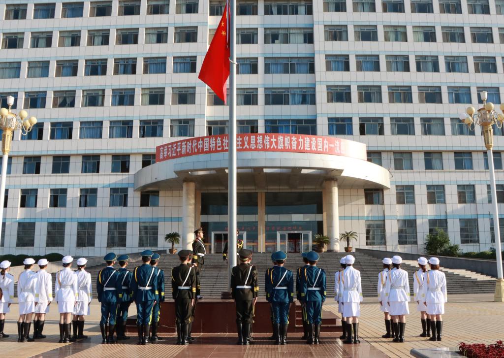 仪式首先向全体新教师致以节日的问候和诚挚欢迎。7:20分,升旗仪式正式开始,26名国旗护卫队队员英姿飒爽,迎着朝阳,迈着整齐的步伐,铿锵有力地走向国旗杆。在雄壮的国歌声中,全体师生庄严肃立,齐唱国歌,注目五星红旗冉冉升起。