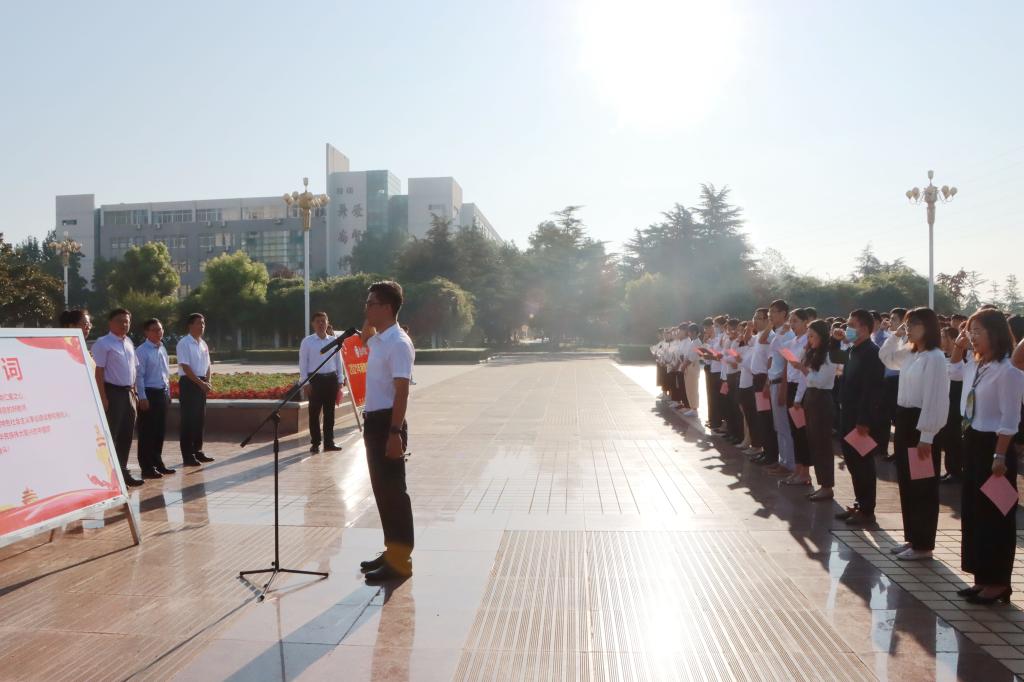 秋风送爽,硕果飘香。在第37个教师节来临之际, 为进一步增强新教师的荣誉感、责任感和使命感,9月8日早上, 由校党委教师工作部组织的2021年新教师入职宣誓仪式在综合楼前广场庄严举行。校党委委员、宣传部部长张昌林,团委书记丁聪、部分二级学院党总支书记和人事处负责同志出席仪式,2021年新入职的79名教师和二级学院学生代表共500余人参加宣誓仪式。仪式由宣传部副部长徐海波主持。