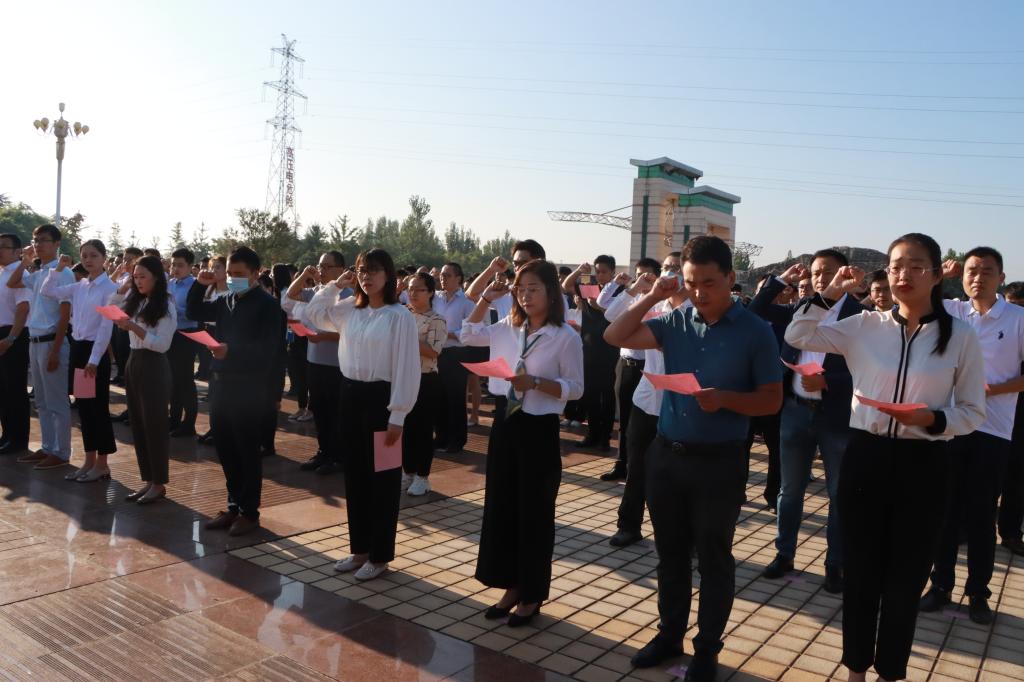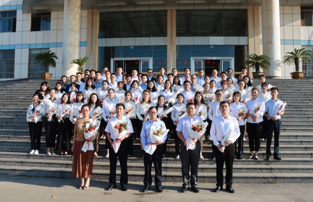 宣誓仪式结束后,全体新入职教师在综合楼前合影留念。