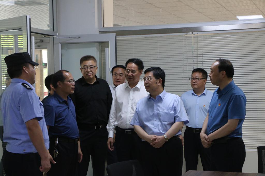 陈平一行来到学校防电信诈骗主题广场、校园110指挥中心、警务室,听取了工作人员的现场汇报,详细了解best365官网校园安全工作的运转机制等情况,对best365官网安全稳定工作给予高度评价。陈平强调,要时刻绷紧安全这根弦,进一步加强法治宣传教育,全力做好隐患排查整治,健全完善应急处置预案,切实筑牢校园安全防线。