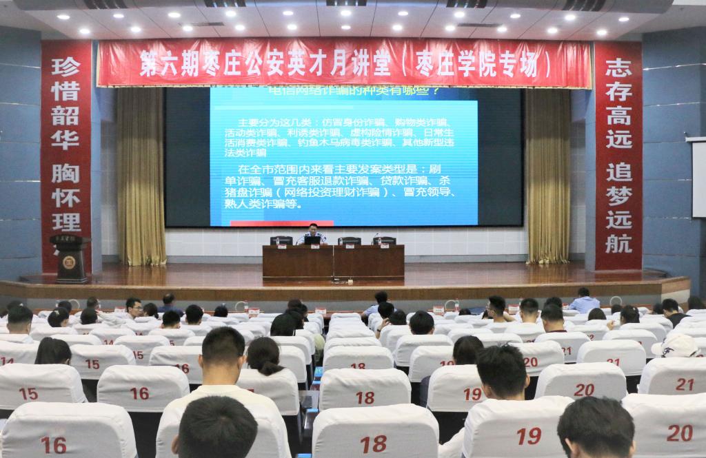 开讲的三位嘉宾是枣庄市市公安局刑侦支队二大队大队长姚雷、市中分局网警大队大队长张翔、市中分局渴口派出所所长王东。他们分别作了题为《识骗、防骗、不骗提升防范电信网络诈骗能力》《守护网络安全呵护如歌青春》《管制刀具安全知识》的宣讲。三位警官结合自身丰富的办案经历,结合发生在师生身边的鲜活案例,深入浅出地向师生宣讲了预防电信网络诈骗、守护网络安全、识别和远离管制刀具等方面的安全知识和技能,使与会师生受到了一次多方面的安全教育。