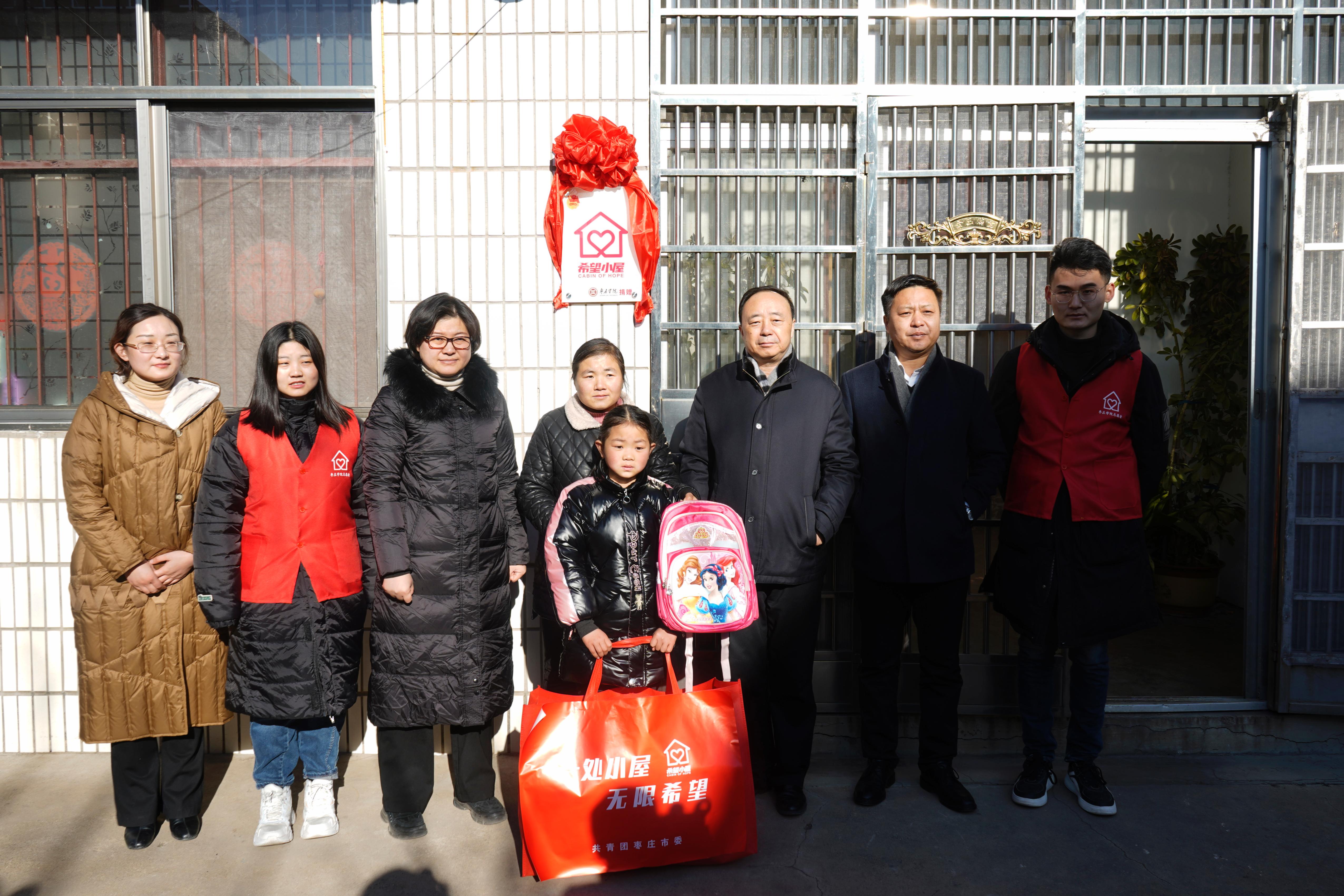 仪式上,曹胜强与周慧、张奇分别为落成的两所“希望小屋”揭牌,并实地看望受助儿童和帮扶志愿者,为孩子们赠送了学习大礼包,鼓励他们好好学习,努力成才。曹胜强还要求校团委扎实做好“希望小屋”的后期志愿帮扶工作,促进实现从“小屋焕新”到“精神焕新”的提升 。