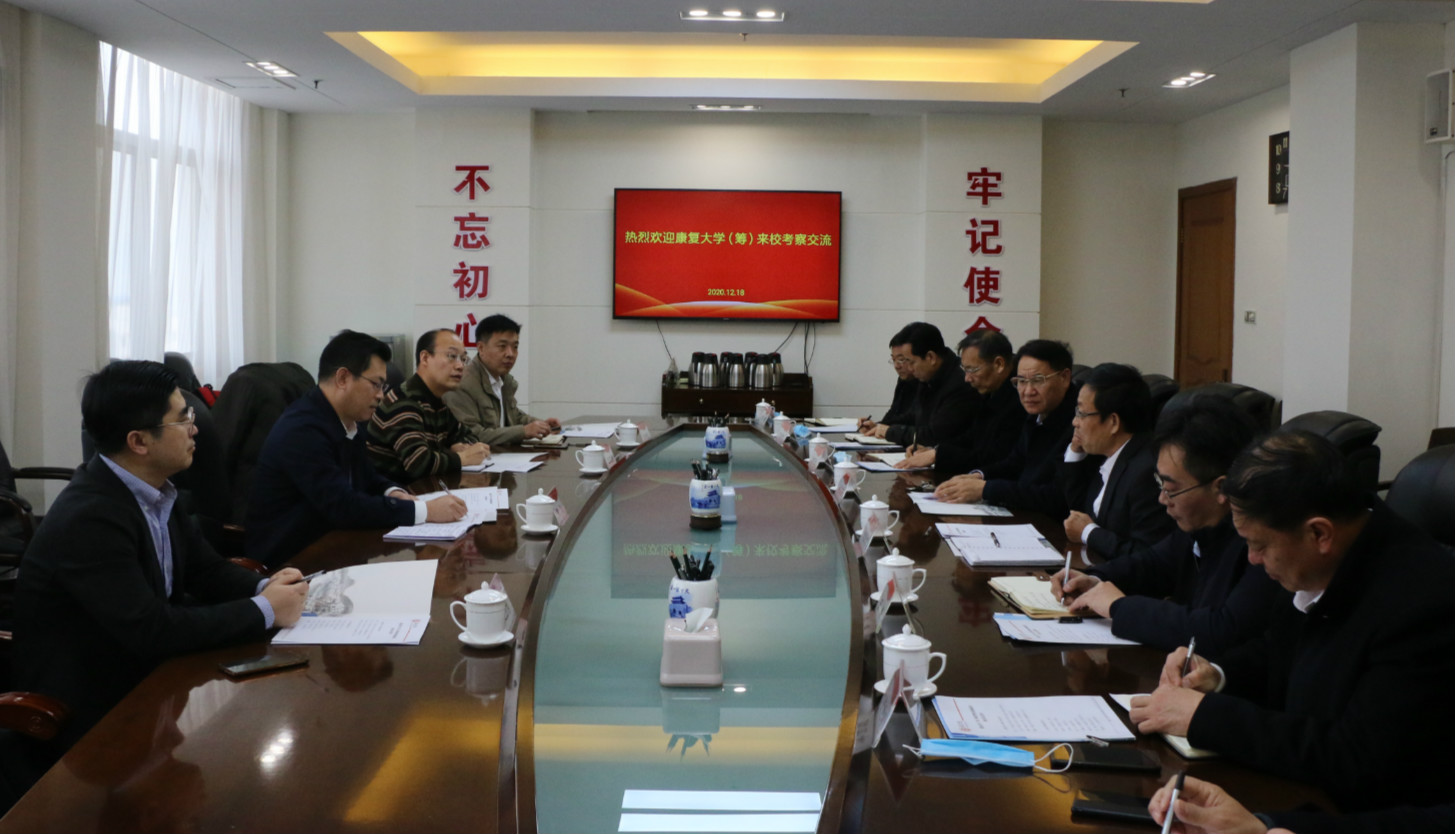 12月18日上午,康复大学(筹)领导小组成员、临时党委委员黄飞一行4人来校考察,就特色办学、人才引进、新校区建设等方面工作与best365官网进行交流探讨,校党委书记曹胜强、校长李文喜、副校长明清河在综合楼接待室会见了黄飞一行。