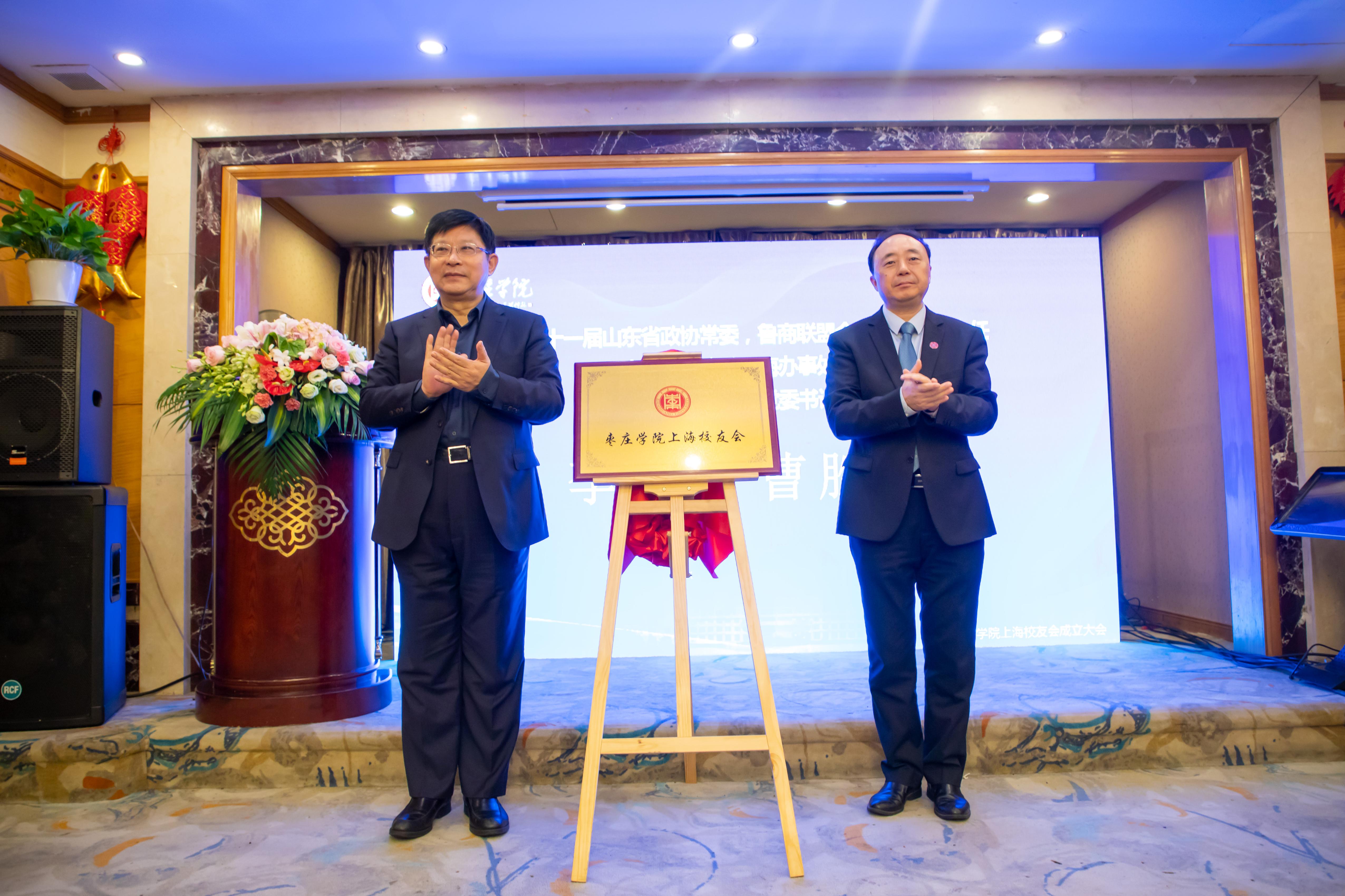 李斌、曹胜强共同宣布best365体育官网平台上海校友会成立并揭牌。
