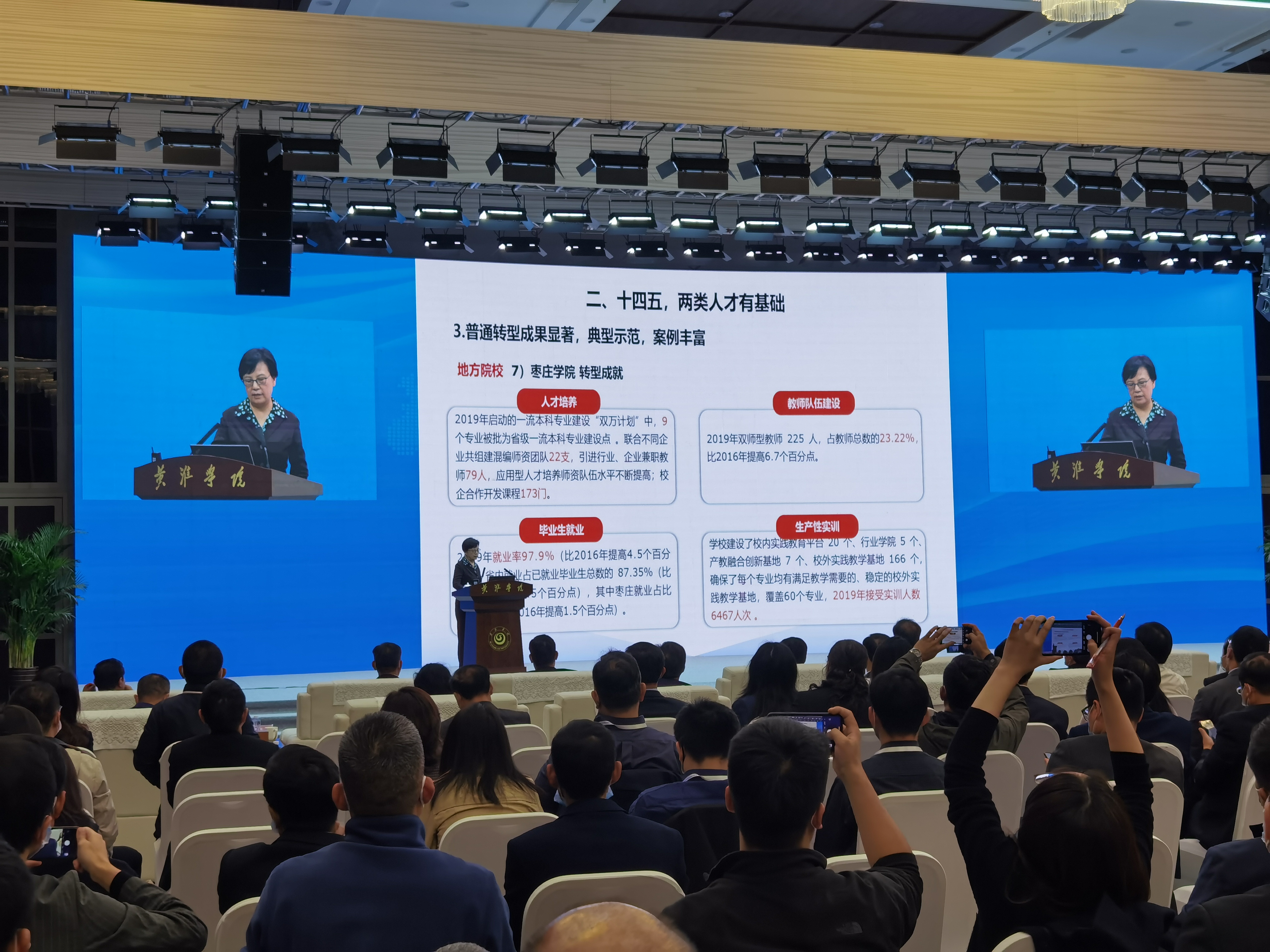 曹胜强主持了分论坛“建设现代教育体系——新时代类型教育的历史方位与未来方向”,并应邀在创新案例环节作了题为《持续深化产教融合,精准打造新时代人才培养驱动链》的报告。报告从体系化推进向应用型转型发展、精准打造新时代人才培养“驱动链”、产教融合为高质量发展插上了飞翔的翅膀等三个方面介绍了best365官网从启动应用型转型到深化产教融合的一系列成功做法,分享了近年来的实践经验,受到与会嘉宾的高度赞誉。报告结束后,曹胜强接受了中国教育在线专访,就best365官网应用型人才培养模式和双师型教师的培养路径回答了记者提问。