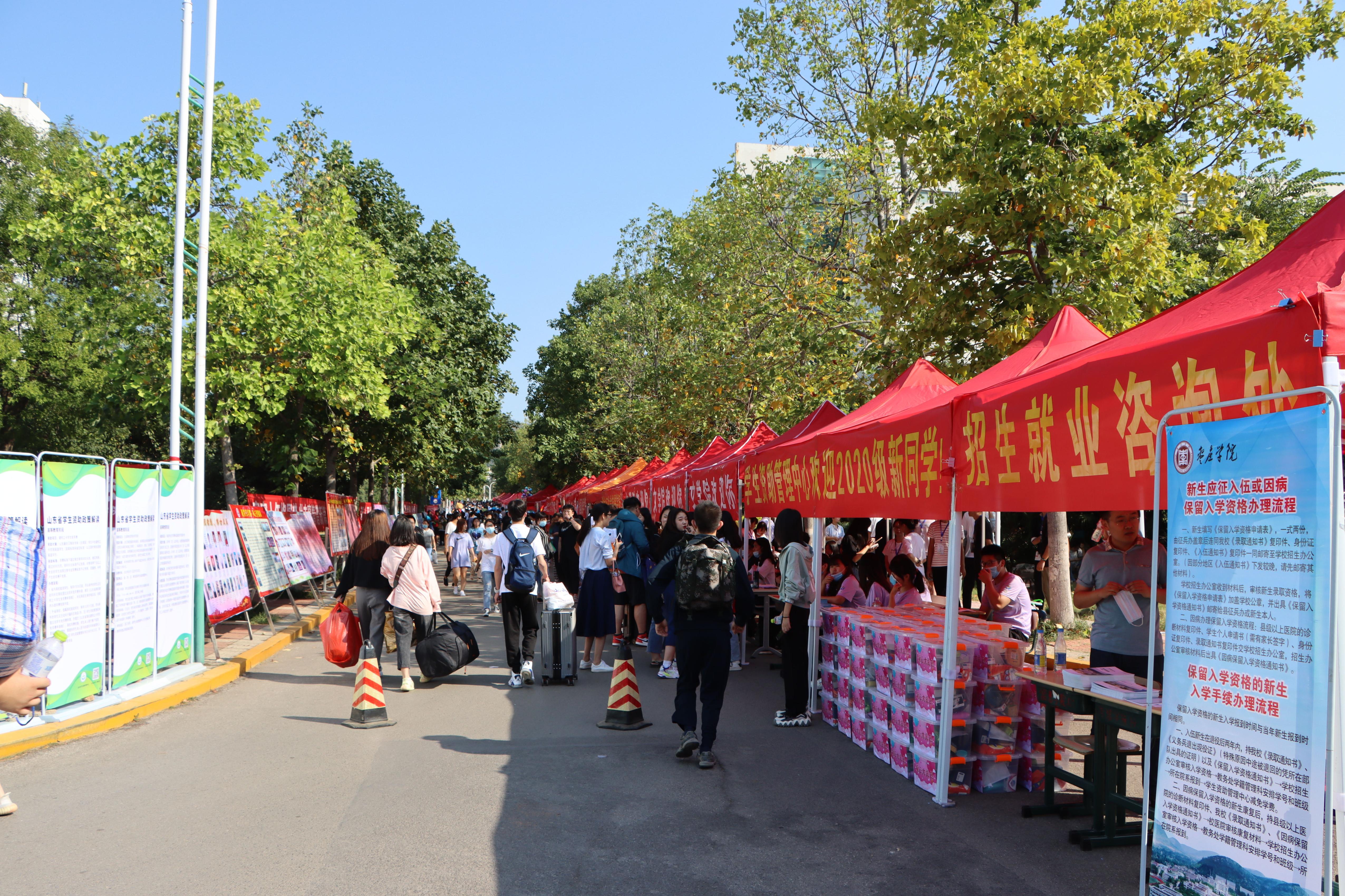 学校在枣庄西站、枣庄东站、京沪高铁枣庄站、枣庄长途客运中心设立了新生接待站,免费接送新生及家长。机关党员干部主动奔赴火车站、汽车站、校门口等迎接点,认真做好引导、测温、登记、行李搬运等工作,充分发挥了党员先锋模范作用和党组织战斗堡垒作用。现场,各二级学院、相关职能部门负责人深入迎新工作一线,积极组织协调迎新服务工作,同新生积极交流,答疑解惑。全校2000余名迎新工作人员和志愿者在校园门口、测温处、各学院报到处等服务站点认真热情地做好新生服务工作,咨询接待、报到引导、绿色通道等服务工作有序进行。迎新期间,学校各部门通力配合,伙食供应、医疗、电力、通讯、校园卡、浴室、开水房服务以及校园内的环境布置和卫生保洁等各个环节都运行通畅,服务到位。