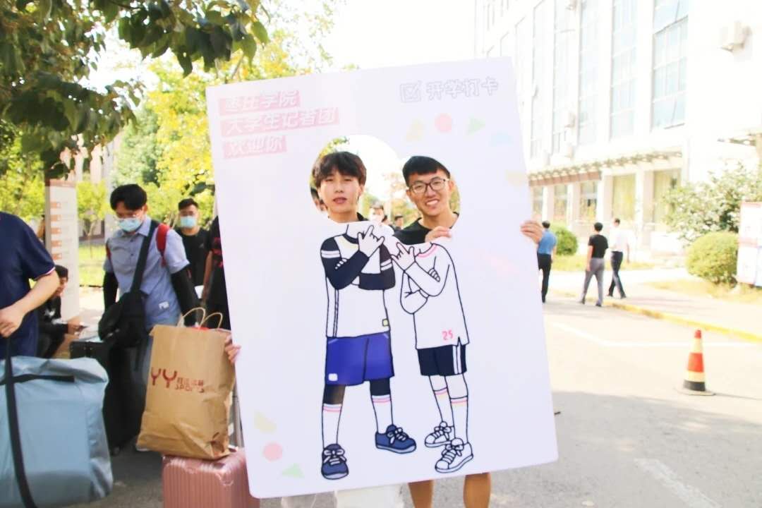 各学院结合自身学科特点,设立了各具特色的新生报到接待处,开展了“零元超市”等别具特色的迎新活动。一条条迎新横幅随风轻扬,一张张萌新笑脸灿烂绽放,迎新写真、LED屏幕鲜亮醒目,整个校园到处洋溢着浓烈热情的迎新氛围,精心布置的“爱上枣院2020”“做自己的王者,成枣院的荣耀”等横幅吸引了不少新生以其为背景定格这具有纪念意义的瞬间。