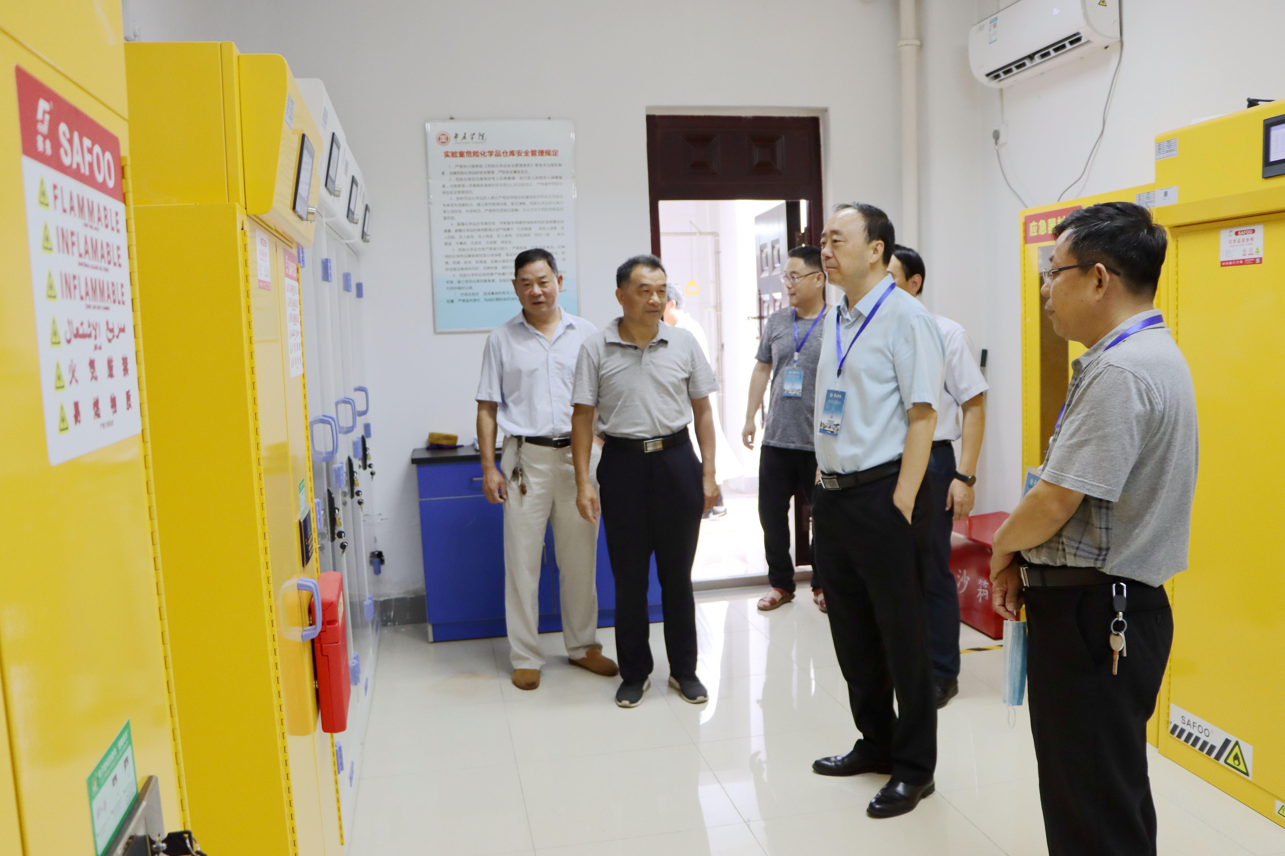 曹胜强带领检查组先后来到化学化工与材料科学学院、鲁南煤化工工程技术研究院、食品科学与制药工程学院、生命科学学院等单位,认真听取了相关学院、实验室负责人关于科研实验室的安全管理情况汇报。检查组依据《高等学校实验室安全检查项目表(2020)》,重点对实验室安全责任制的落实、实验室安全管理制度建设、实验室安全教育与培训、危险化学品全程管理、消防及水电等设施运行、实验操作安全、设备运行管理及场所环境、假期实验安全等方面进行了检查,并对前期排查中存在安全隐患的整改落实情况进行督导核查。曹胜强对各单位前期实验室安全自查自纠工作及做好实验室安全管理所采取的积极措施和取得的成效给予充分肯定,同时结合现场检查情况就部分实验室存在的问题提出整改要求和针对性意见。