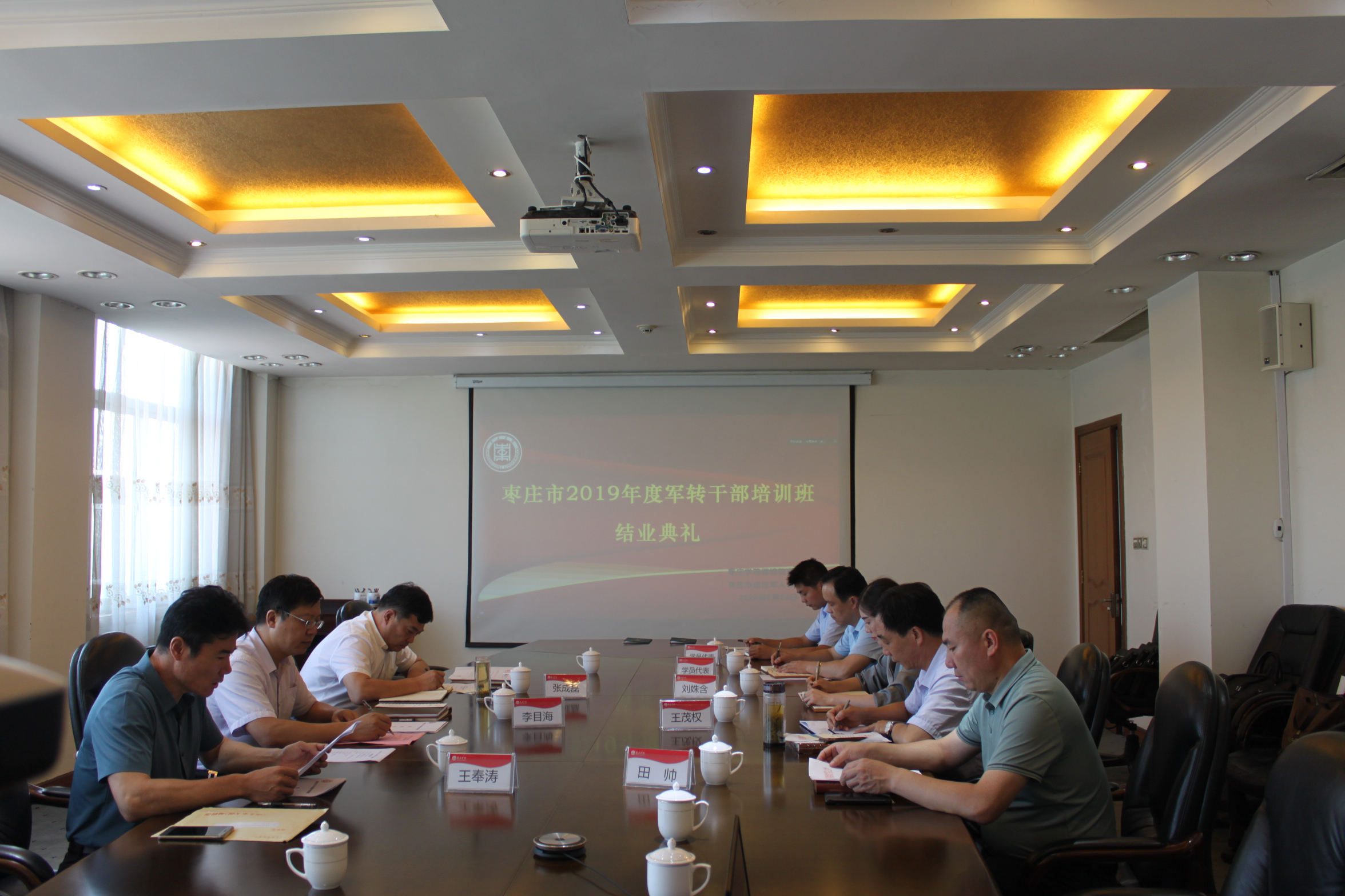 7月24日上午,枣庄市2019年度军转干部培训班结业典礼在best365官网综合楼七楼会议室举行,副校长李目海出席会议并讲话,枣庄市退役军人事务局副局长张成磊、继续教育学院副院长王奉涛、培训班管委会全体成员、部分优秀学员代表等参加了本次结业典礼,培训班其他学员通过视频观看典礼,典礼由王奉涛主持。