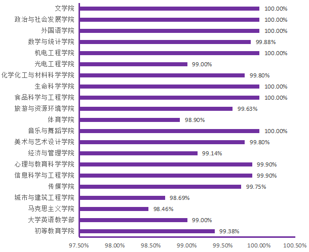 各院(部)的开课数、开课门次、班级数、教师数(人次)、学生数(人次)和学生上课率情况如下图所示: