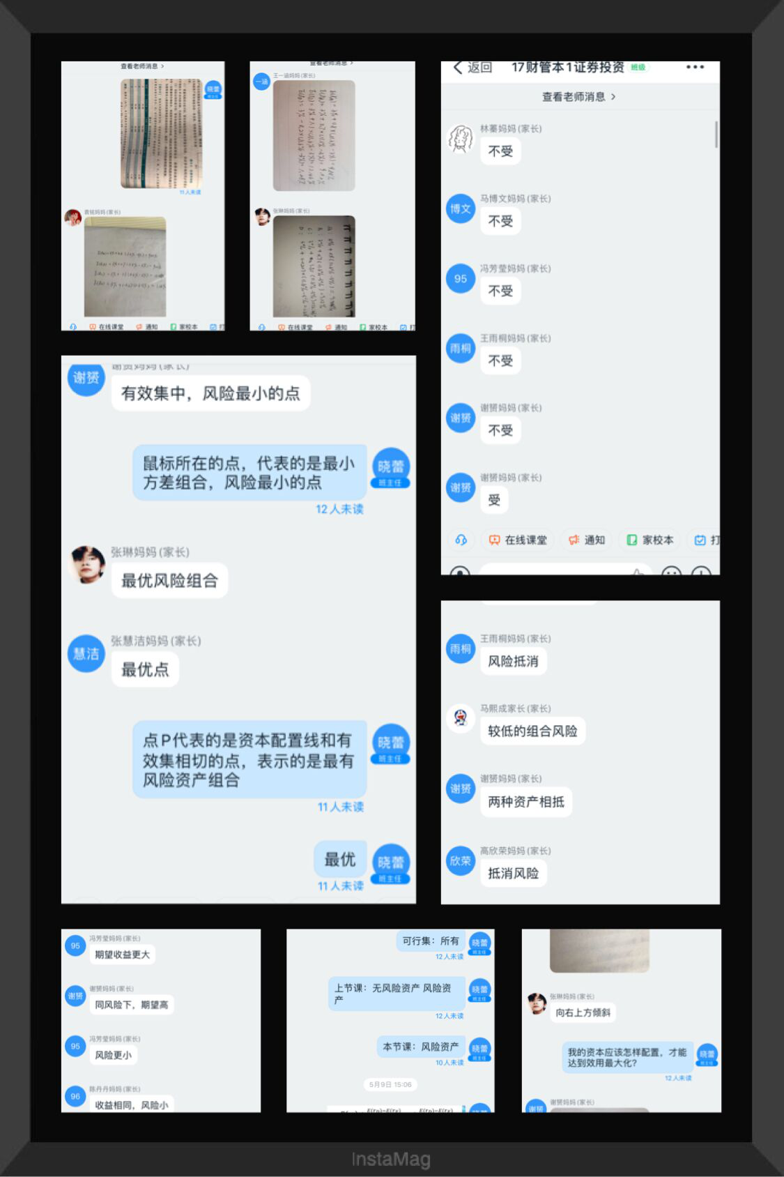 由于疫情的影响,经济与管理学院刘晓蕾老师先建立了班级微信群,以便及时下达消息及文件。在授课时,刘老师选择了钉钉平台进行《证券投资》课程及《证券投资模拟》课程的授课。通过钉钉直播课堂,课前可以及时提醒学生上课,课中能够与学生实时互动,课后配合长江雨课堂的使用进行章节测验,迅速掌握学生的学习状态,以达到良好的教学效果。