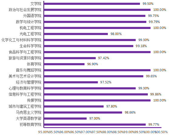 图6. 各院(部)6月2日线上学生上课率分布图