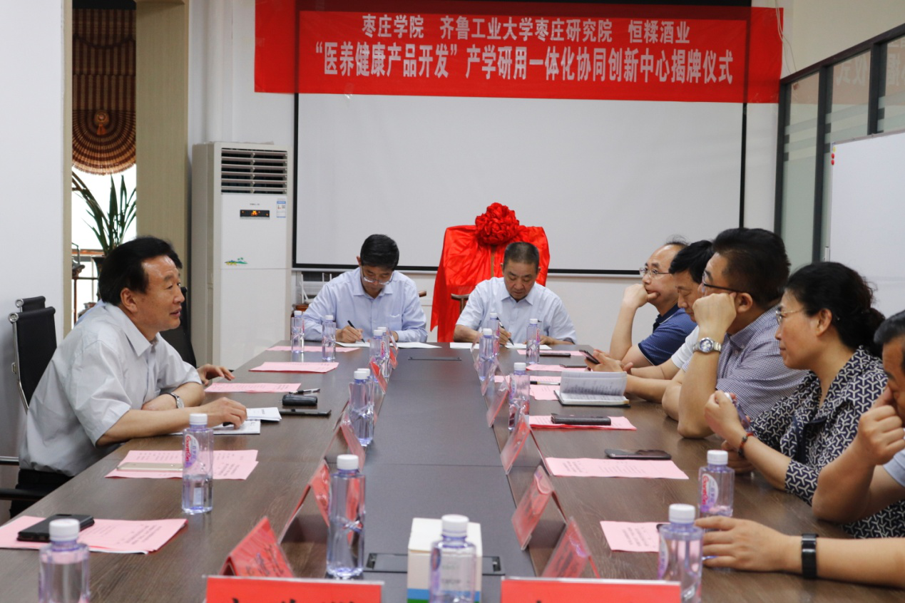 崔西成首先致辞,同时对企业的发展历程和主要运营项目进行了详细介绍。校长李东对学校产教融合办学成效,近年来人才引进、科研以及服务地方等工作取得的成果做了介绍。副市长周宗安对best365体育官网平台和山东恒糅酒业有限公司在产学研用合作方面取得的成效给予充分肯定和赞赏,并希望双方继续加强合作,争取更多科研成果的转化落地。最后,李东和周宗安共同为best365体育官网平台-山东恒糅酒业有限公司“医养健康产品开发”产学研用一体化协同创新中心揭牌并合影留念。