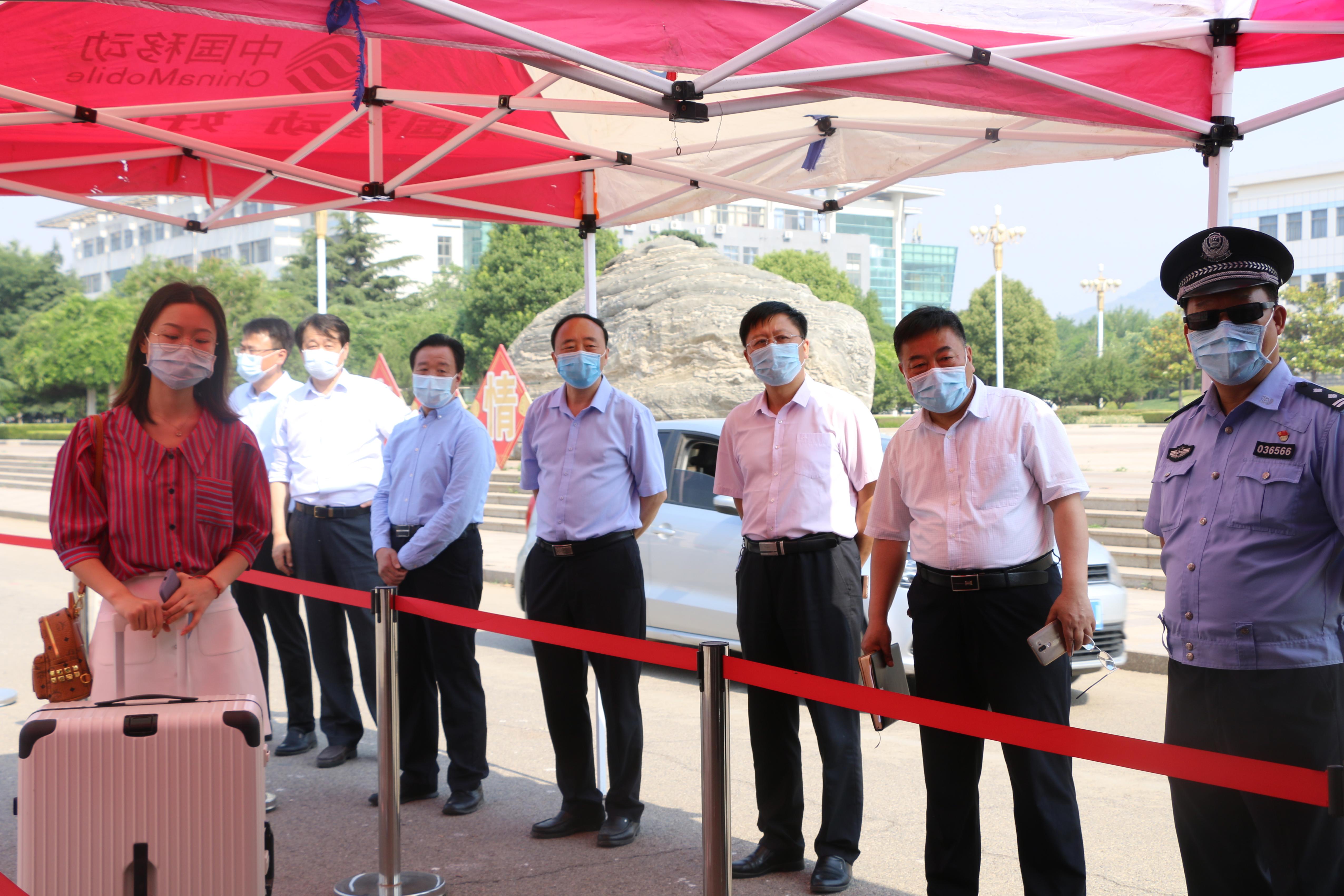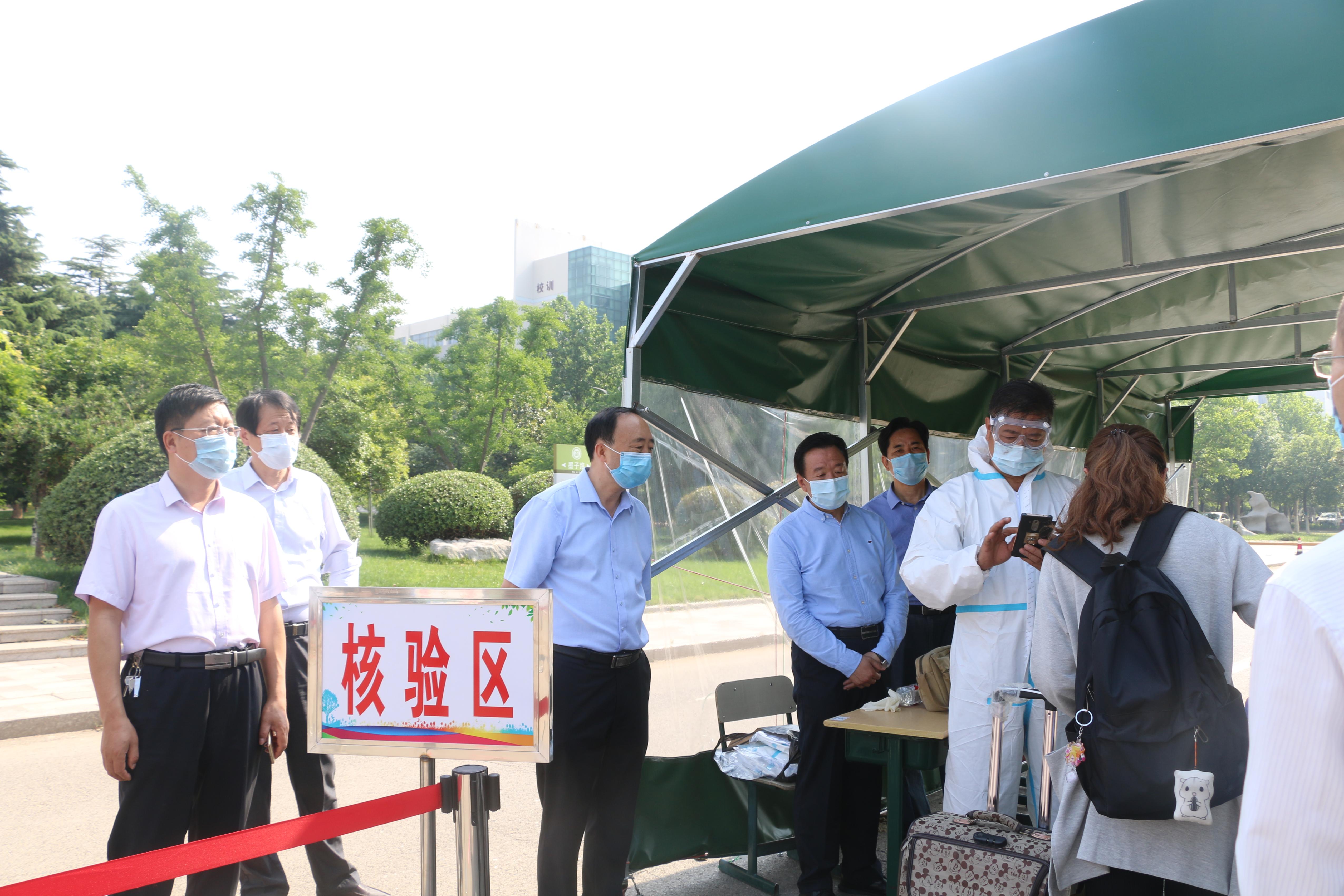 学校高度重视本次学生大规模返校复课工作。一大早,校领导曹胜强、李东、曾宪明、李目海率队来到校门口迎接学子归来,并检查指导学生返校工作。校领导仔细查看了学生报到流程及体温监测点的运行准备情况,并嘱咐工作人员认真做好返校报到流程环节,细致周到服务好每名返校学生,不忽视任何一个细节,确保同学们平安健康返校。办公室、团委、学生工作处、后勤服务处等相关部门负责同志陪同检查。