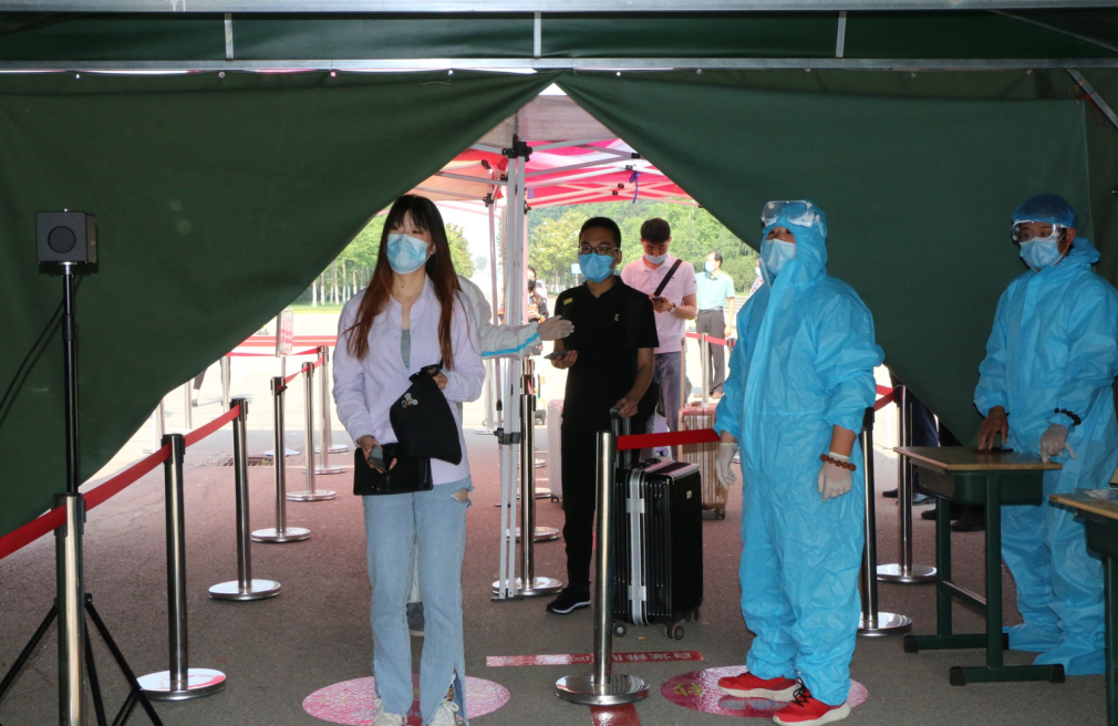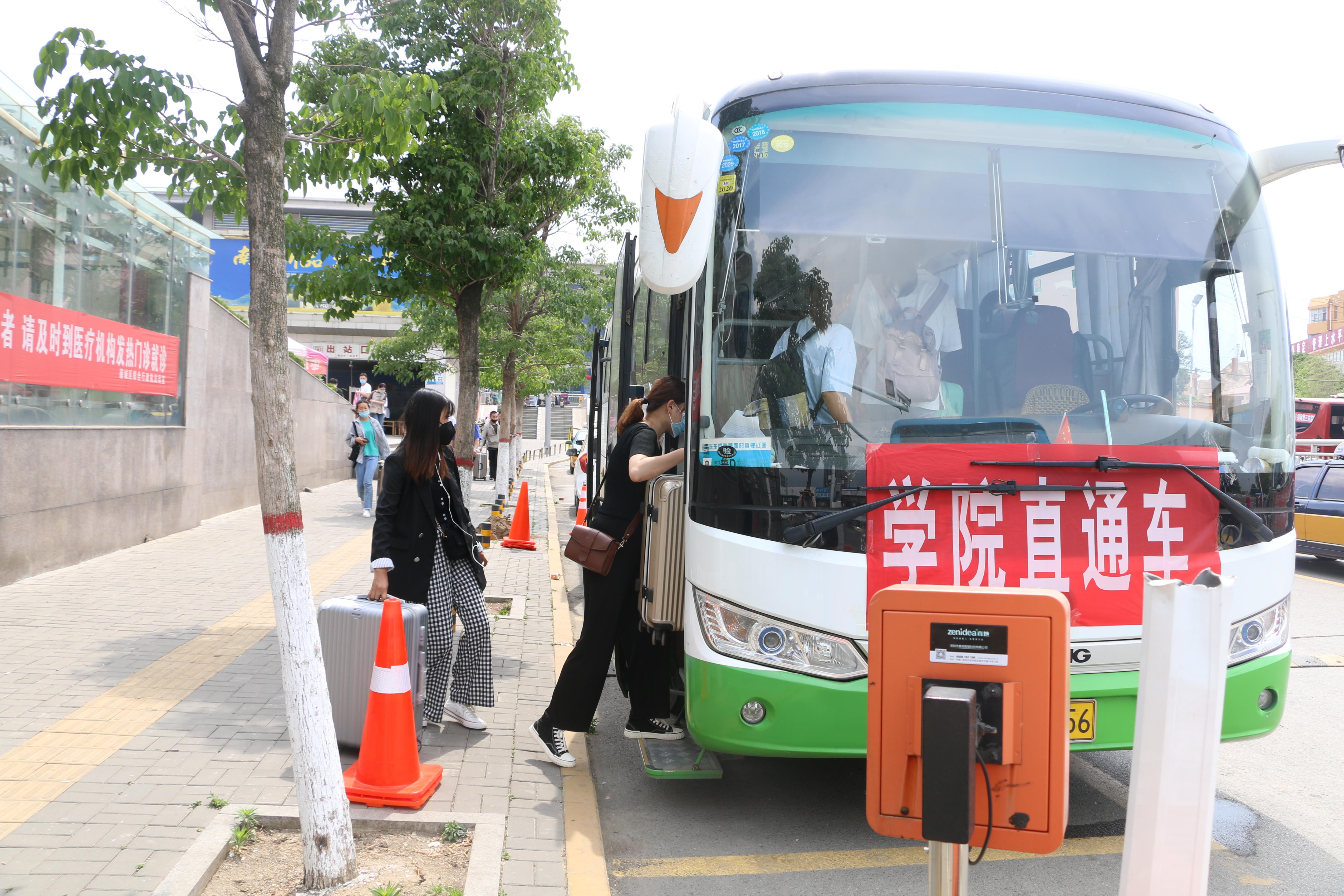 学生下车后立即进入专用通道,由工作人员指引,完成健康码和返校码核验、手部和行李消毒、红外线测温等程序后,即可返回宿舍。整个报道流程通畅快捷,报到现场井然有序。保卫处工作人员严格按照流程验码放行,做好交通引导;校医院医护人员全副武装,随时应对突发情况;各学院报到点,教师志愿者们负责维持秩序、发放爱心健康包和就餐引导等工作。各院系组织有力,职能部门通力协作,学校领导亲切关怀,上下齐心协力,为返校学生提供贴心服务,让学生安心、让家长放心。