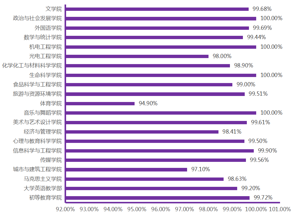 各院(部)的开课数、开课门次、班级数、教师数(人次)、学生数(人次)和学生上课率情况如下图所示: