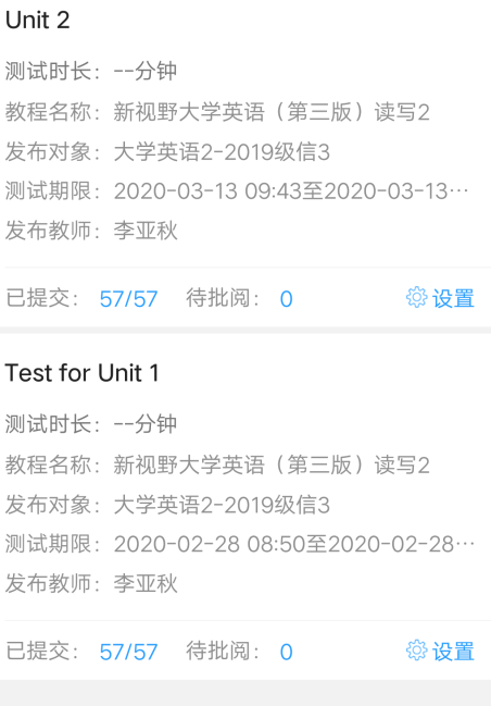 3.为了检测学生线上学习效果,每个单元学完后,利用U校园发布小测试。测试完成后,根据学生的作答情况进行讲解反馈。