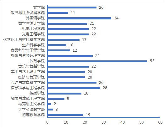 图4.各院(部)4月30日线上授课教师数(人次)分布图