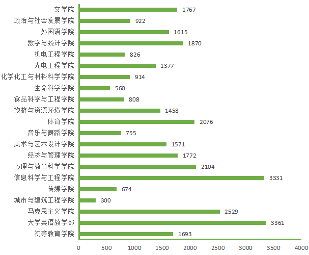 图4.各院(部)4月28日线上授课教师数(人次)分布图