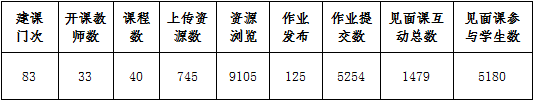 本周线上教学课程1087门、3627门次;参与授课教师授课人次3627人,涉及教学班周合计2627个,学生学习人次数178163;累计上线学习学生人次数占累计应上线学习人次数比例为99.3%。