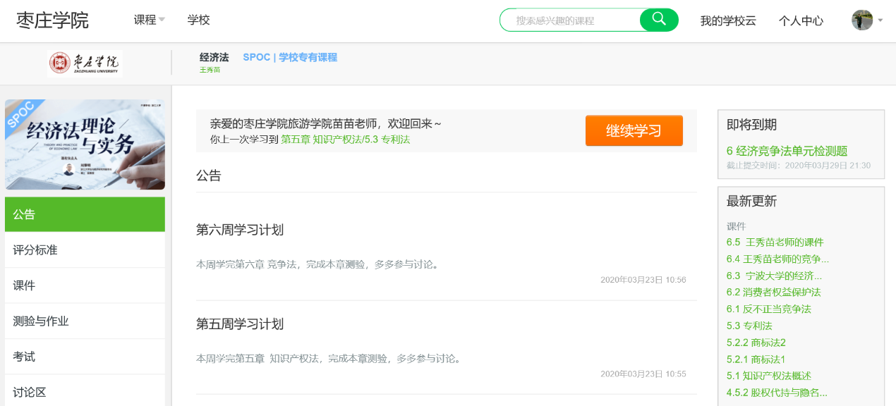 第一,依托优质的教学资源——浙江大学的《经济法理论与实务》课程的视频库,王秀苗老师在中国大学MOOC平台上建立了best365体育官网平台的异步SPOC《经济法》课程。