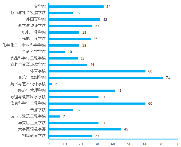 图4.各院(部)4月20日线上授课教师数(人次)分布图