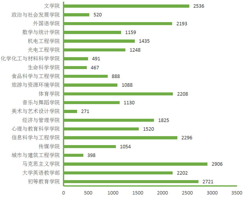 图5. 各院(部)4月17日线上授课学生数(人次)分布图
