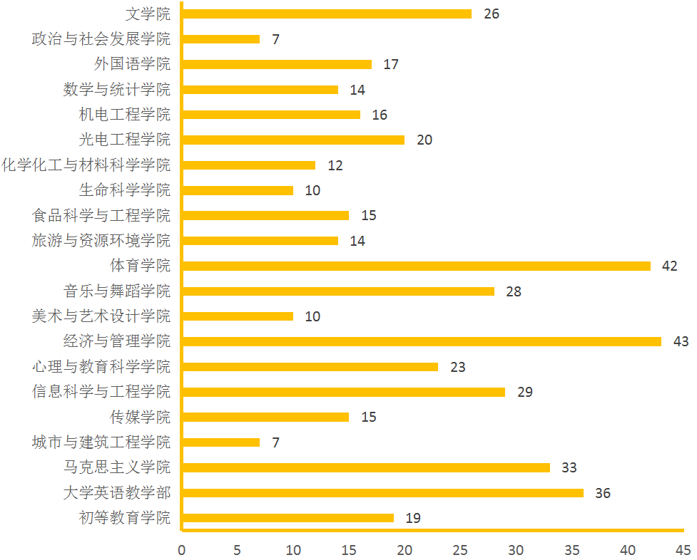 图4.各院(部)4月17日线上授课教师数(人次)分布图