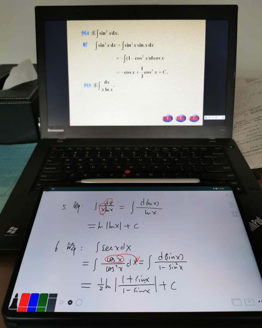 课中:利用腾讯会议直播间功能进行实时的讲解,教师将PPT和其他学习资源以共享屏幕、演示课件等方式呈现给大家。考虑到该课程的特点,主要采用共享屏幕的形式,利用手写笔板书,带着学生一起去思考这个公式定理怎么来的,这个题目的思路是怎么来的,一步一步是怎么证明的。在讲解的过程中可以利用连麦进行点名和学生主动互动等活动。