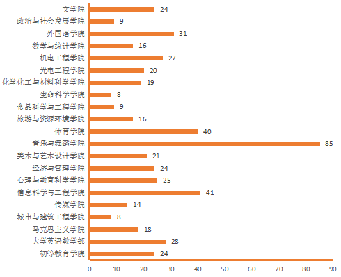 图4.各院(部)4月15日线上授课教师数(人次)分布图