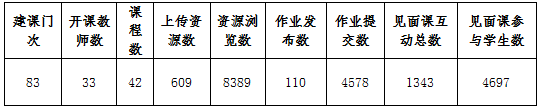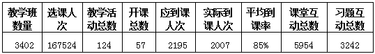 best365官网师生在雨课堂平台使用情况,根据大数据统计,由此查看本周教学班数量、教学活动总、开课总数、应到课人次、实际到课人次、课堂互动总数、平均到课率、习题互动总数,详情见下表: