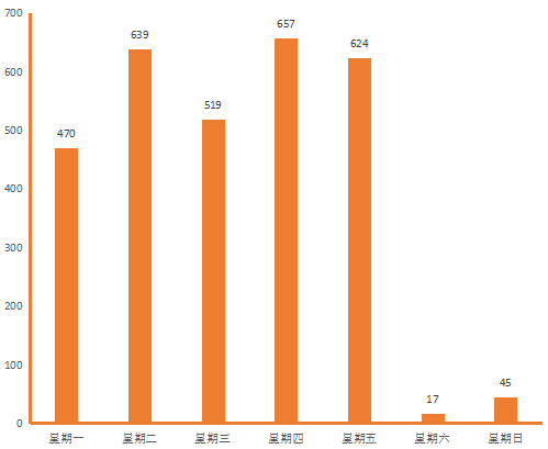 图2.4月6日-4月12日期间课程数(门次)分布图