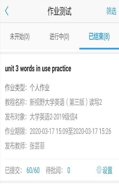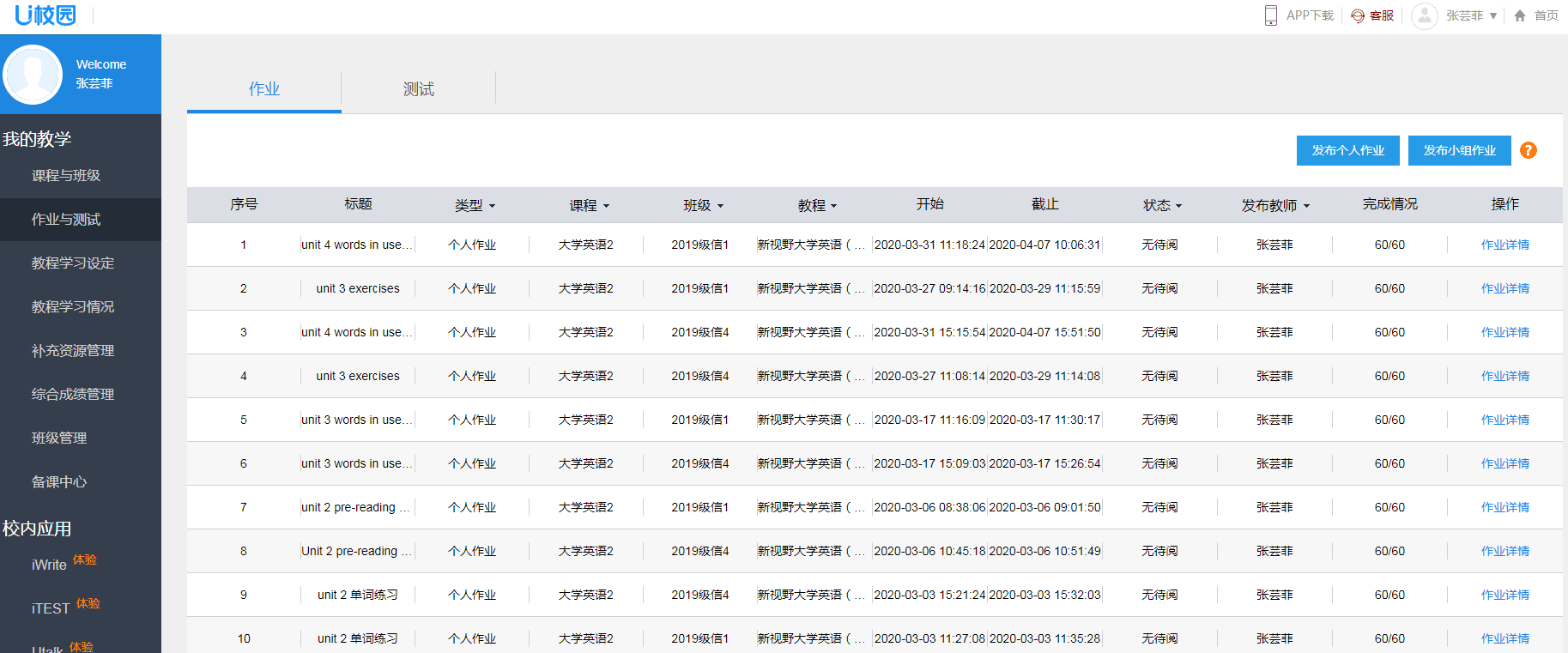 大学英语教学部张芸菲老师积极响应疫情期间 “停课不停学、停课不停教”的号召,认真开展线上教学,确保班级学生线上学习学有所获、学有所成。张芸菲老师本学期教授2019级信1和信4班的大学英语2课程,线上课程以大学英语教材新视野读写课本所配套的应用软件“U校园”为依托,并根据学生的学习习惯和学习特点,采用“QQ群直播屏幕分享”的方式进行在线授课,并辅佐以“EV录屏”方式方便学生课后复习。
