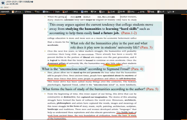 与此同时,在线上教学的备课中,考虑到有的学生没有电脑,无法同时听课并打开电子教材,因此,在教学中尽量把课本内容呈现在PPT中,并使用画笔或word文档等工具进行标注讲解。