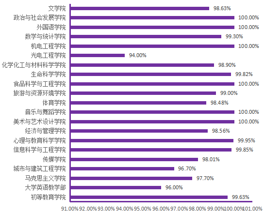 各院(部)的开课数、开课门次、班级数、学生数(人次)、教师数(人次)和学生上课率情况如下图所示: