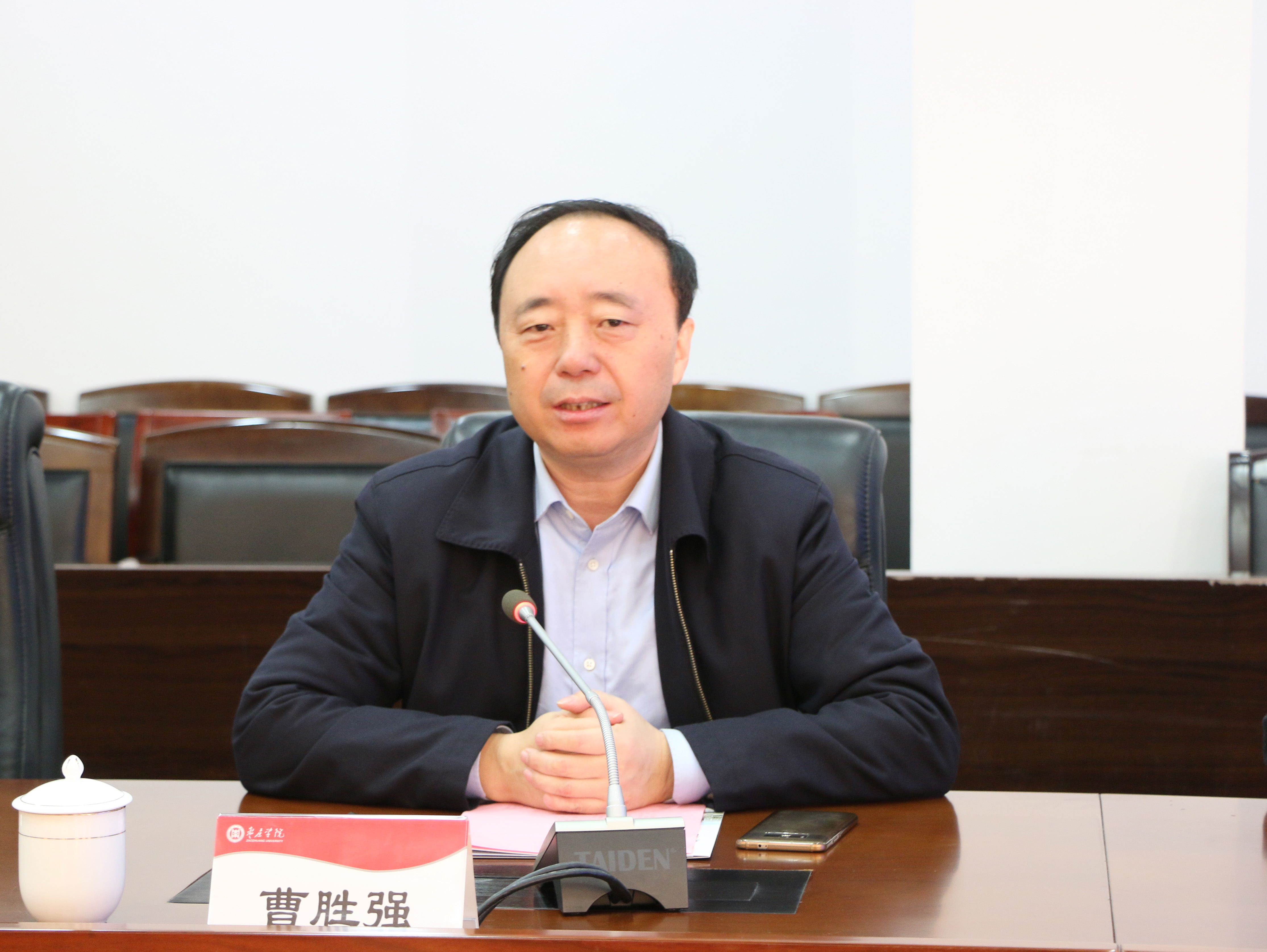 集体观看学校宣传片后,曹胜强代表学校致欢迎辞,回顾了两校的深远友谊,对聊城大学长期以来给予best365官网的支持和帮助表示感谢。曹胜强从学校基本概况、近年来发展状况、改革发展方向等方面对best365官网情况做了总体介绍。他表示,作为地方本科院校,best365体育官网平台近年来不断突破地域局限,在产教融合、人才引进等方面走出了自己的特色,学校将沿着国内知名的高水平应用型大学建设道路砥砺前行。他希望,两校以此次交流为契机,深化友谊、共谋发展,实现合作共赢。