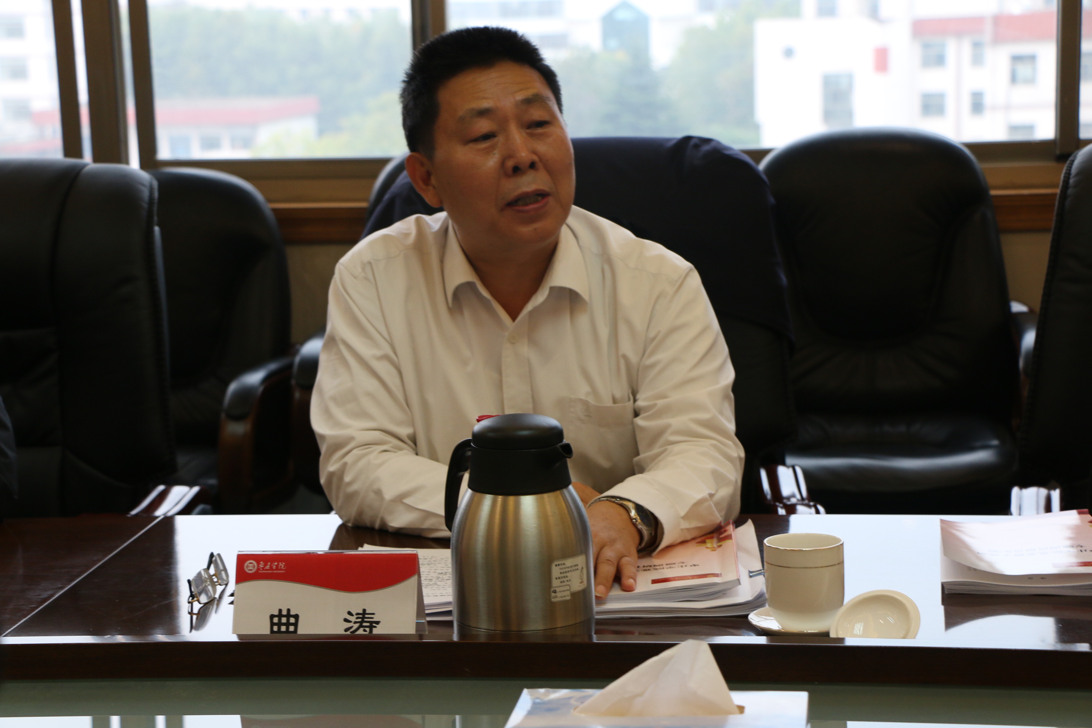 按照省委部署和学校“不忘初心、牢记使命”主题教育工作安排,10月23日下午,best365官网在综合楼八楼会议室召开校领导班子主题教育调研成果交流会。省委第二巡回指导组组长曲涛到会指导并讲话, 校领导曹胜强、李东、曾宪明、李目海、韩素玲、李丽清出席会议。巡回指导组部分成员, 相关部门和单位负责人参加会议,会议由校党委书记曹胜强主持。