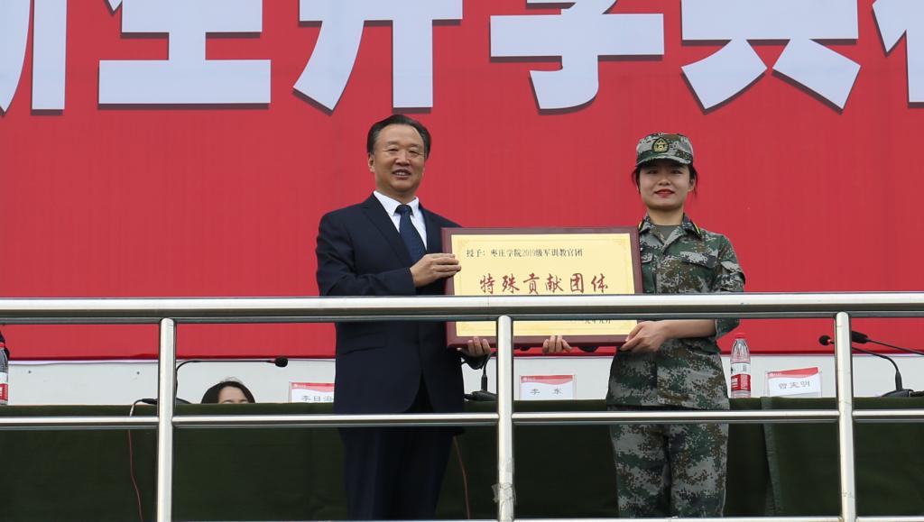李东代表全校师生员工向5452名新同学表示热烈欢迎和美好祝愿,向大学生教官、指导员、全体工作人员表示衷心感谢。李东指出,各位新同学载誉而来,以优异的成绩脱颖而出、圆梦枣院,并自此开启新的征程,开启大学第一课。经过为期十天的军事训练,同学们克服了种种困难,经受住了各种考验,学习了军人吃苦耐劳、爱国奉献、勇敢顽强、坚忍不拔的优秀品质,提高了身体素质,锻炼了意志品格,增强了纪律观念,圆满完成了所有训练科目,取得了骄人的成绩。