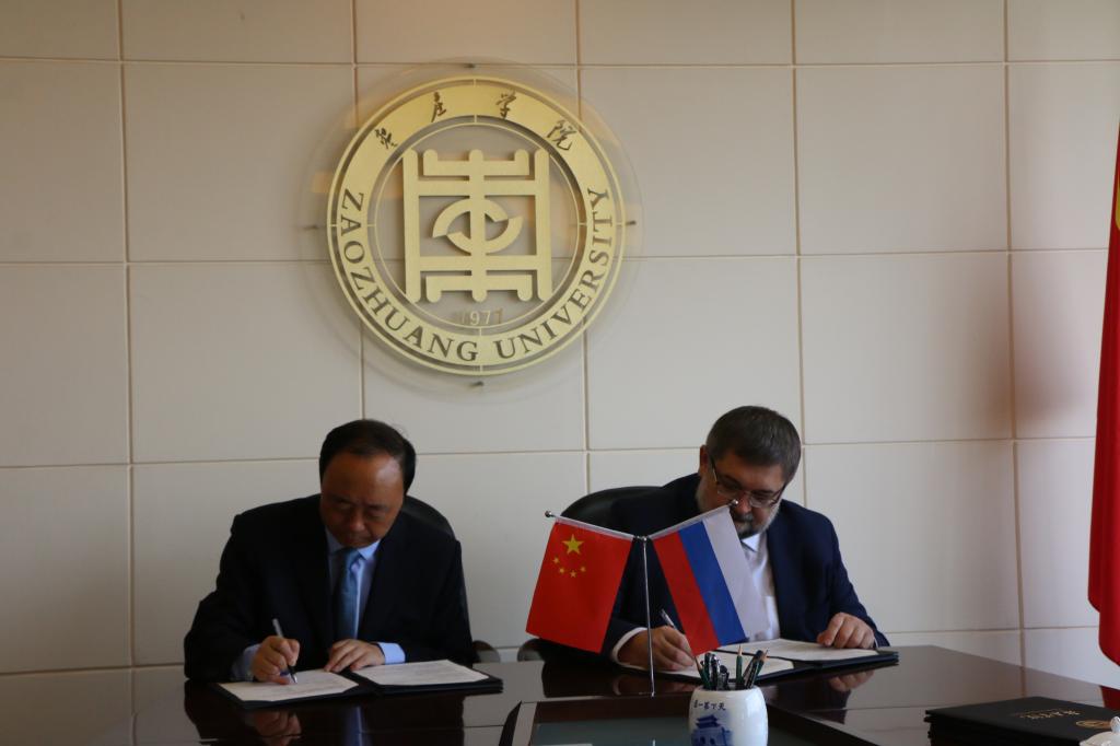 曹胜强代表best365官网与塔拉卡诺夫校长签署合作交流协议,并颁发了特聘教授聘书。