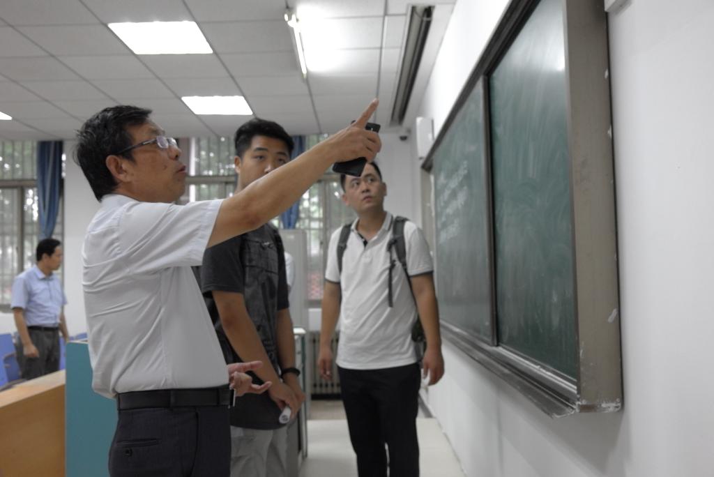 会后,明清河及所有与会人员对需要改造的教室进行了实地考察,针对智慧教室建设过程中教室原有资源安置、线路改造、具体安装细节等问题进行了细致讨论,并提出一些改进意见和建议。