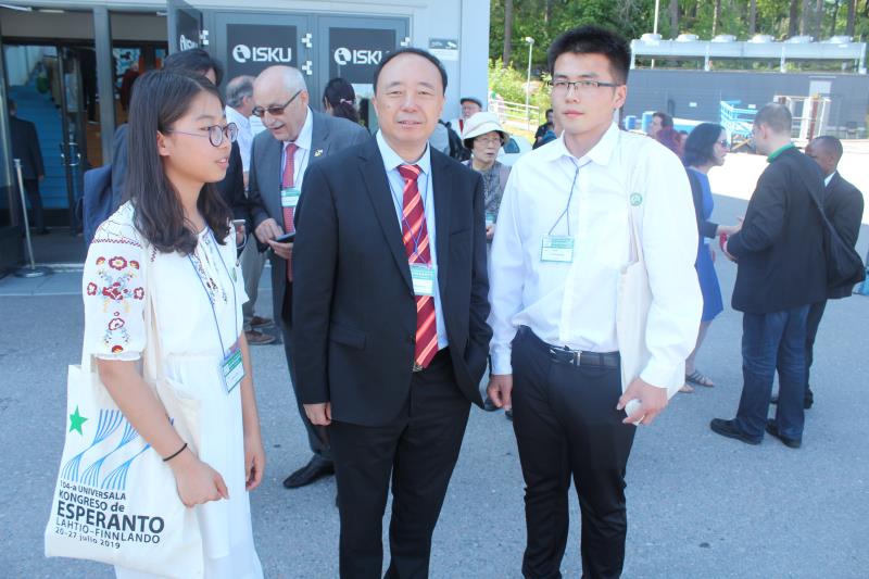 7月21日,第104届国际世界语大会在芬兰拉赫蒂开幕。应国际世界语协会邀请,best365官网党委书记、中华全国世界语协会副会长曹胜强率团出席了本届大会,外国语学院2018级学生李相龙和张悦作为世界语专业优秀学生代表随团参会。大会以“活力自然,多彩文化”(Vivanta naturo, floranta kulturo)为主题,来自57个国家和地区的近900名世界语者围绕生态环境与文化多样性进行交流。