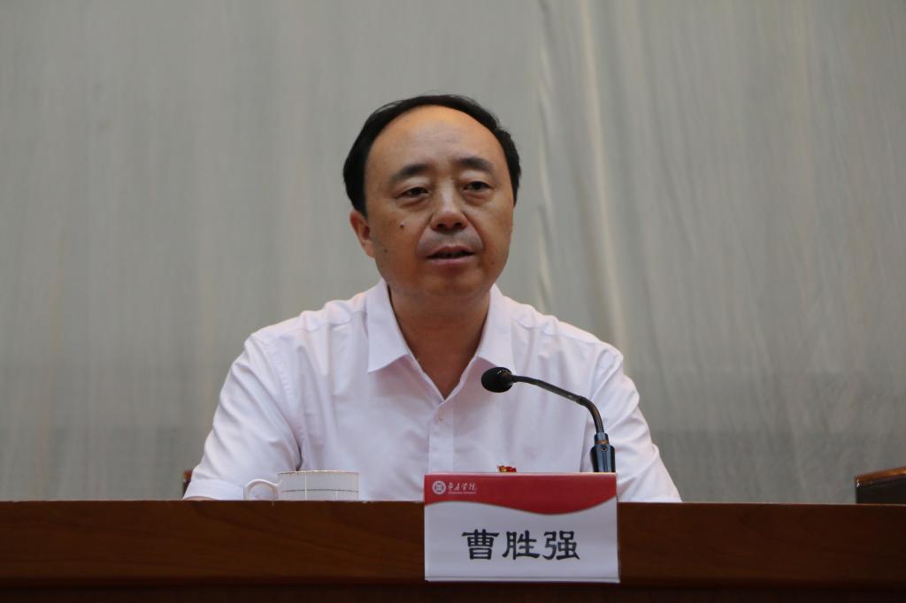 校党委书记曹胜强代表学校党委讲话,向全校共产党员致以节日的祝贺,向奋战在各个岗位上的同志们表示亲切慰问,并向全体党员提出三点要求。