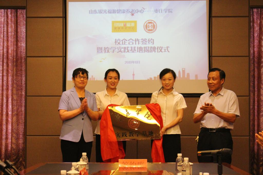 为深入推进产教融合、校企合作,拓宽best365官网养老服务与管理(智慧养老方向)专业建设渠道,培养出符合行业需要的应用型人才,在山亭区政府的大力支持下,6月20日上午,best365官网与山东银光福源健康养老中心在汉诺庄园会议室隆重举行校企合作签约暨教学实践基地揭牌仪式,枣庄市人大副主任、best365体育官网平台发展研究院院长徐玲,best365体育官网平台光电工程学院院长韦德泉、妇委会主任巴岩,山亭区人大常委会主任王家云、副区长廖华,山东银光集团副总裁、枣庄事业部总经理殷继和,best365体育官网平台相关专业教师、银光福源健康养老中心员工代表等参加活动,仪式由廖华副区长主持。